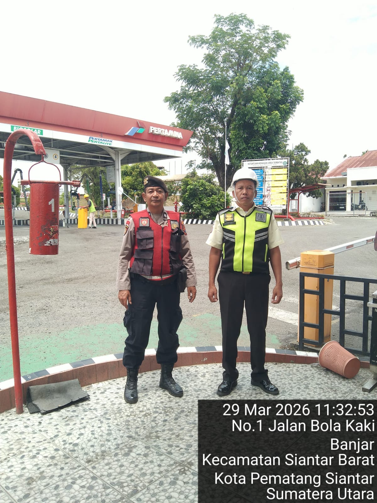 Satuan Samapta Polres Pematangsiantar melaksanakan pengamanan objek vital guna mengantisipasi potensi gangguan keamanan dan ketertiban masyarakat (kamtibmas), Minggu (29/3/2026) siang.