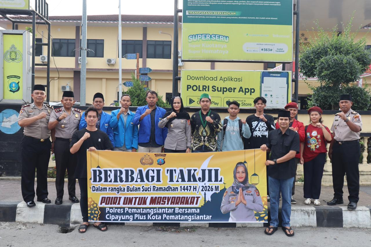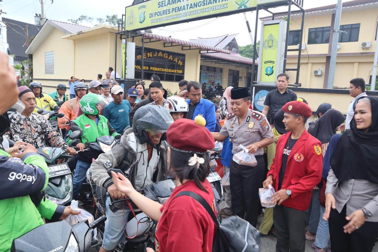 Kepedulian terhadap masyarakat di bulan suci Ramadhan kembali ditunjukkan Polres Pematangsiantar. Untuk ketiga kalinya selama Ramadhan 1447 H/2026 M, jajaran kepolisian menggelar kegiatan berbagi takjil kepada masyarakat yang melintas di depan Mako Polres Pematangsiantar, Senin (9/3/2026) sekitar pukul 17.00 WIB.