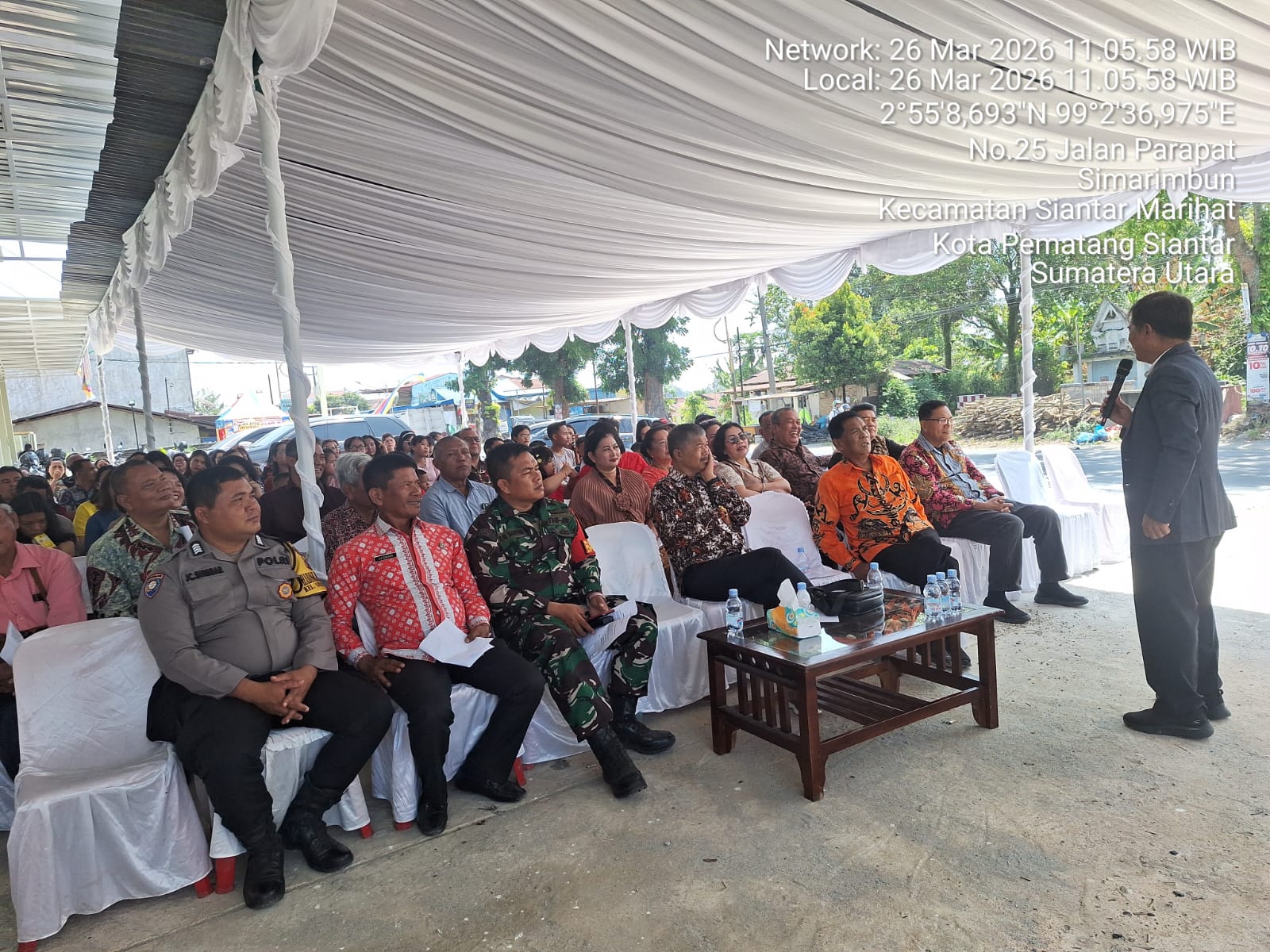 Kapolsek Siantar Marihat, AKP Doni Simanjuntak, SH menyampaikan bahwa kegiatan tersebut turut dihadiri oleh Lurah Simarimbun Haposan D. Siahaan, SH beserta staf, Babinsa Kelurahan Simarimbun Serda Ramot G. Sianturi, tokoh masyarakat Tiop Silalahi dan Maxuel Silalahi, tokoh agama sekaligus pengkhotbah Pdt. Dr. Robert Siahaan, M.Th, Manager Indomaret Paulus Angga, Ketua RW 01 Lingkungan I Riduan Silalahi, serta warga sekitar.