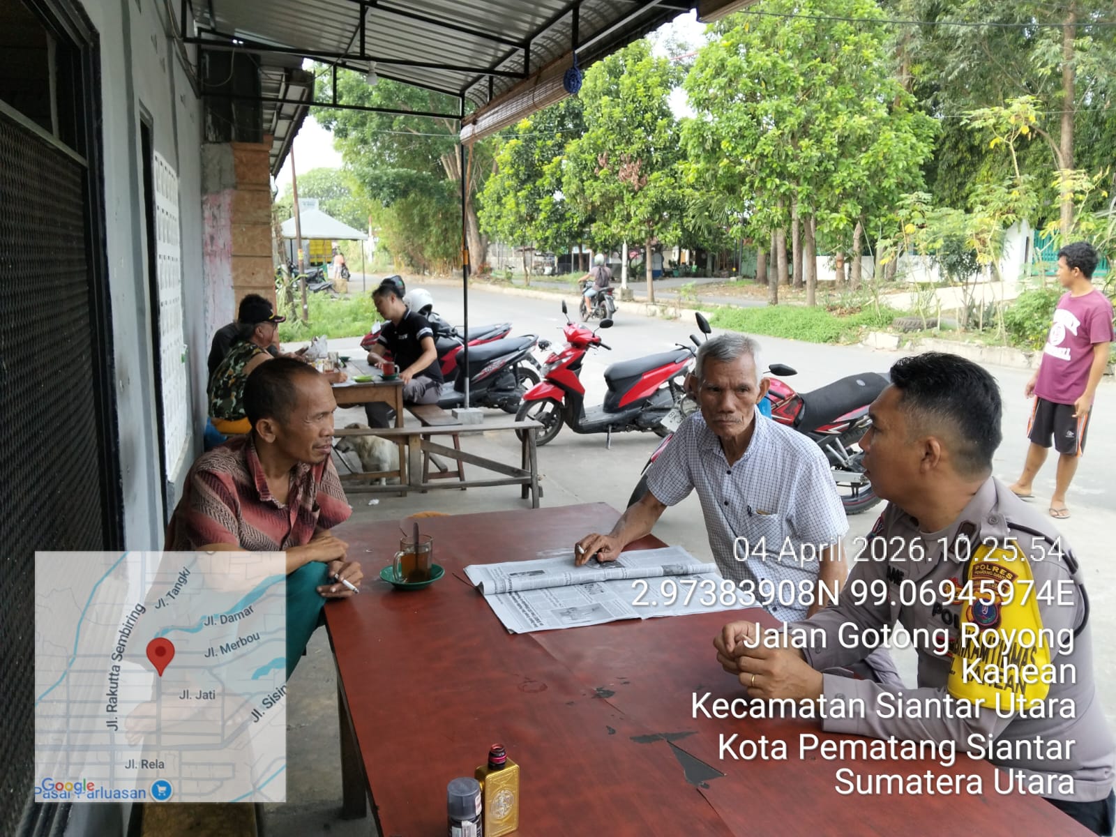 Bhabinkamtibmas Polsek Siantar Utara, Polres Pematangsiantar, Aipda H.E. Pane melaksanakan kegiatan sambang kamtibmas kepada warga di Jalan Gotong Royong, Kelurahan Kahean, Kecamatan Siantar Utara, Kota Pematangsiantar, Sabtu (4/4/2026) sekitar pukul 10.00 WIB.