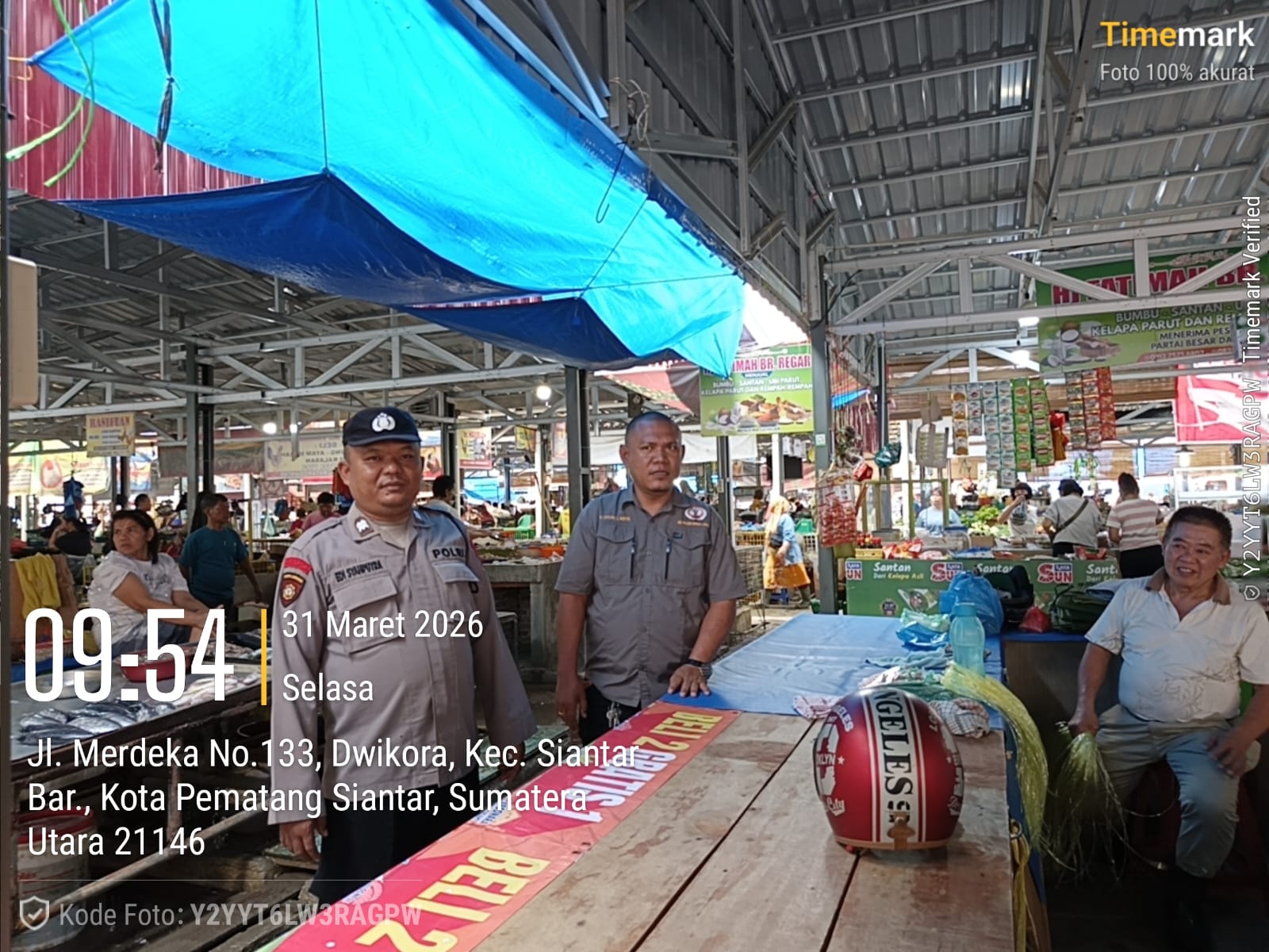 Polsek Siantar Barat, Polres Pematangsiantar, melaksanakan patroli pagi di kawasan Pasar Horas, Jalan Merdeka, Kelurahan Dwikora, Kecamatan Siantar Barat, Selasa (31/3/2026) sekitar pukul 10.00 WIB.