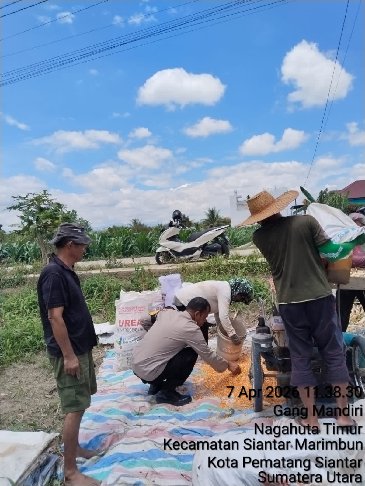 Dalam proses panen, warga juga memanfaatkan alat penggilingan jagung bantuan dari Dinas Pertanian Kota Pematang Siantar yang disalurkan melalui Polri.