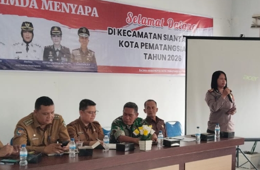 Kapolsek Siantar Utara AKP Jahrona Sinaga, SH, mewakili Kapolres Pematangsiantar AKBP Sah Udur T.M. Sitinjak, SH, SIK, MH, menghadiri kegiatan “Forkopimda Menyapa” yang digelar di Aula Kantor Kecamatan Siantar Utara, Jalan Patuan Anggi, Kelurahan Sukadame, Senin (30/3/2026) sekitar pukul 10.00 WIB.