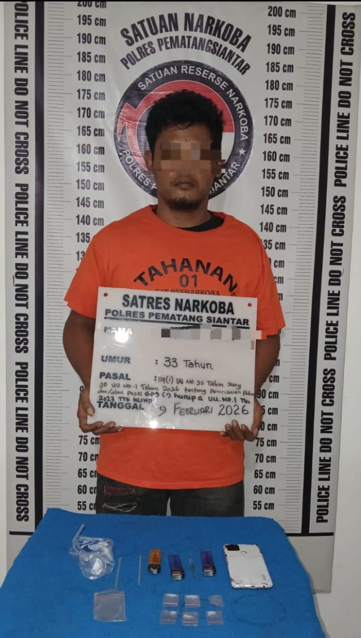 Satuan Reserse Narkoba Polres Pematangsiantar berhasil mengungkap kasus kepemilikan narkotika jenis sabu di Jalan Patuan Anggi Gang Ciput, Kelurahan Pardomuan, Kecamatan Siantar Timur, Kota Pematangsiantar, Senin (9/2/2026) sore sekira pukul 17.00 WIB.