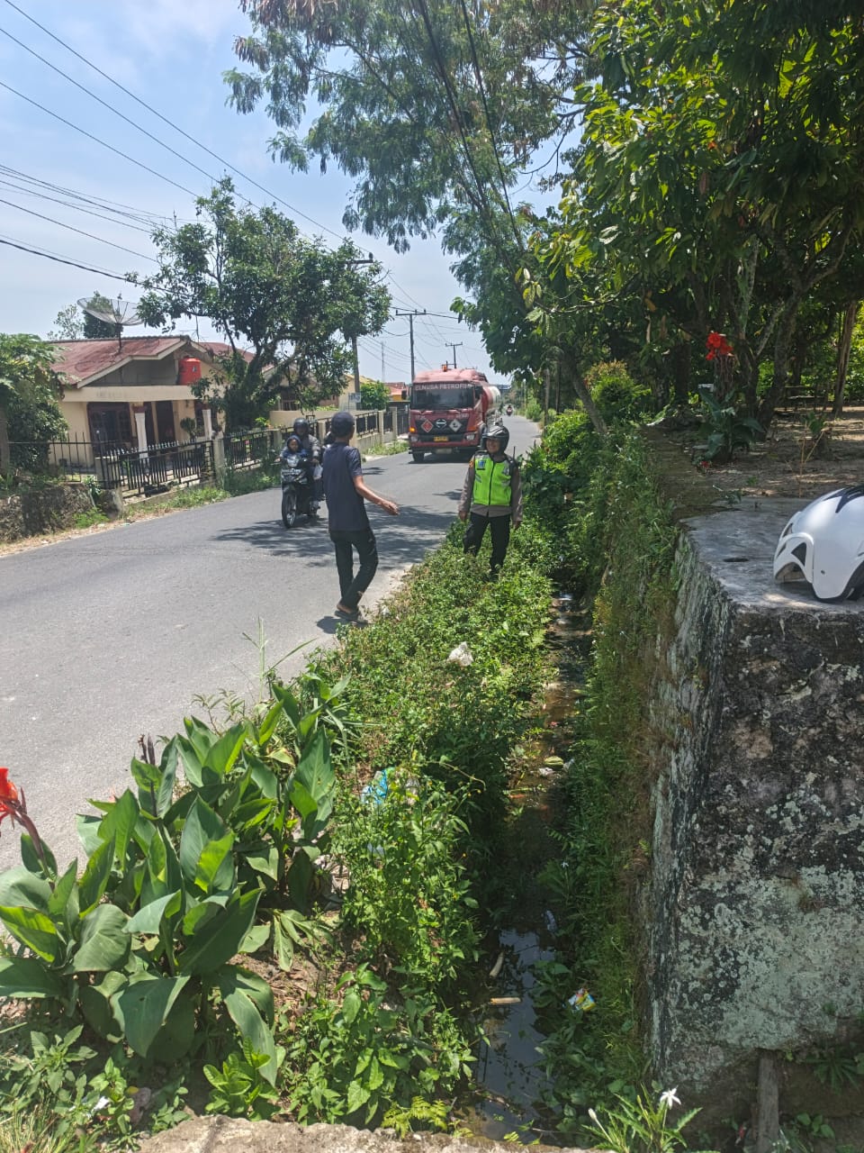 Petugas Pos Pengamanan (Pos Pam) VI Simpang Sidamanik, Polres Pematangsiantar, menunjukkan respons cepat dalam memberikan pertolongan pertama terhadap korban kecelakaan lalu lintas (laka lantas) saat pelaksanaan Operasi Ketupat Toba 2026, Rabu (25/3/2026) siang sekira pukul 11.20 WIB.