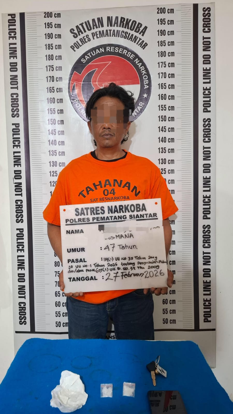 Satuan Reserse Narkoba Polres Pematangsiantar berhasil mengungkap kasus kepemilikan narkotika jenis sabu dengan berat bruto 2,18 gram di pinggir Jalan Adam Malik, Kelurahan Timbang Galung, Kecamatan Siantar Barat, Kota Pematangsiantar, pada Jumat (27/2/2026) malam sekira pukul 20.00 WIB.